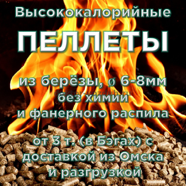 Топливные пеллеты, березовые, от 3 т., с доставкой и разгрузкой на ваш склад – Омск. Пеллеты для котлов, теплотворностью 5-5.7 кВт/кг - экологичное топливо для отопления помещений. Оптовая продажа от 3 т., в Биг-бэгах, березовых пеллет, 6-8 мм, изготовленных из отходов производства фанеры - измельченных остатков дерева, обрезного шпона, бересты, без применения химии и опилок фанерного распила. Большая теплотворность березовых пеллет сопоставима с углем. Минимальное количество золы и выделений сажи увеличивает срок эксплуатации котла. Топливные пеллеты купить в Омске.